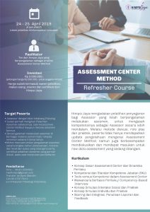 HIMPSI JAYA mengadakan pelatihan penyegaran bagi Assessor yang telah berpengalaman melakukan asesmen. Untuk mengasah kompetensinya sebagai Assessor secara lebih mendalam. Melalui metode diskusi, role play dan praktek, peserta tidak hanya mendapatkan update pengetahuan mengenai Assessment Center Method, namun juga berkesempatan mendiskusikan dan mendapat masukan untuk raw data assessment yang sedang ditangani.